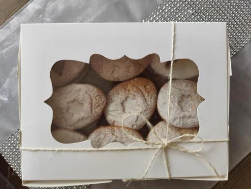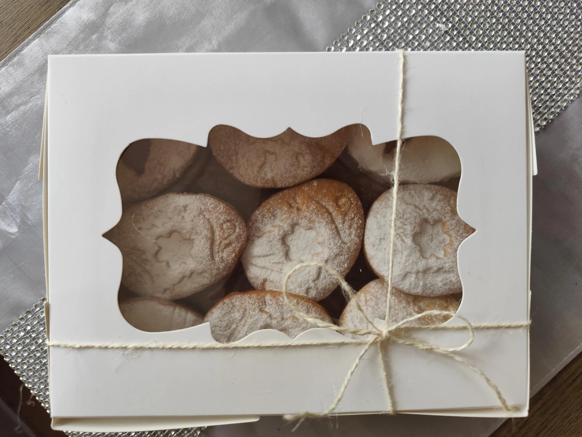 Húsvéti puha mézes linzer ablakos fóliás dobozban, így akár ajándéknak is adható.